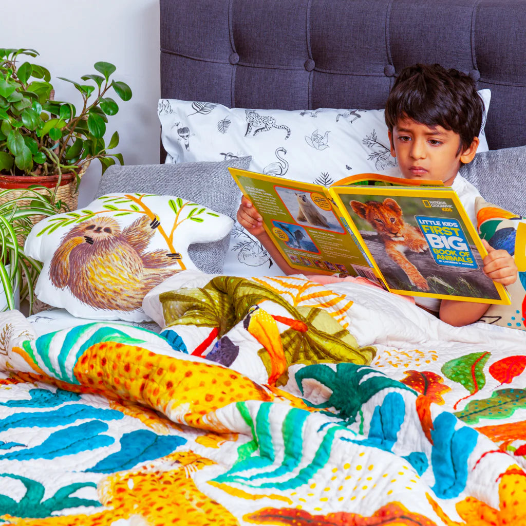 Our infant bedding set features our iconic The Forest is my Playground quilt now as a baby blanket and quilt with the Toucan Play pillow and a set of 2 Gymnastics bolsters.Who is this for?
