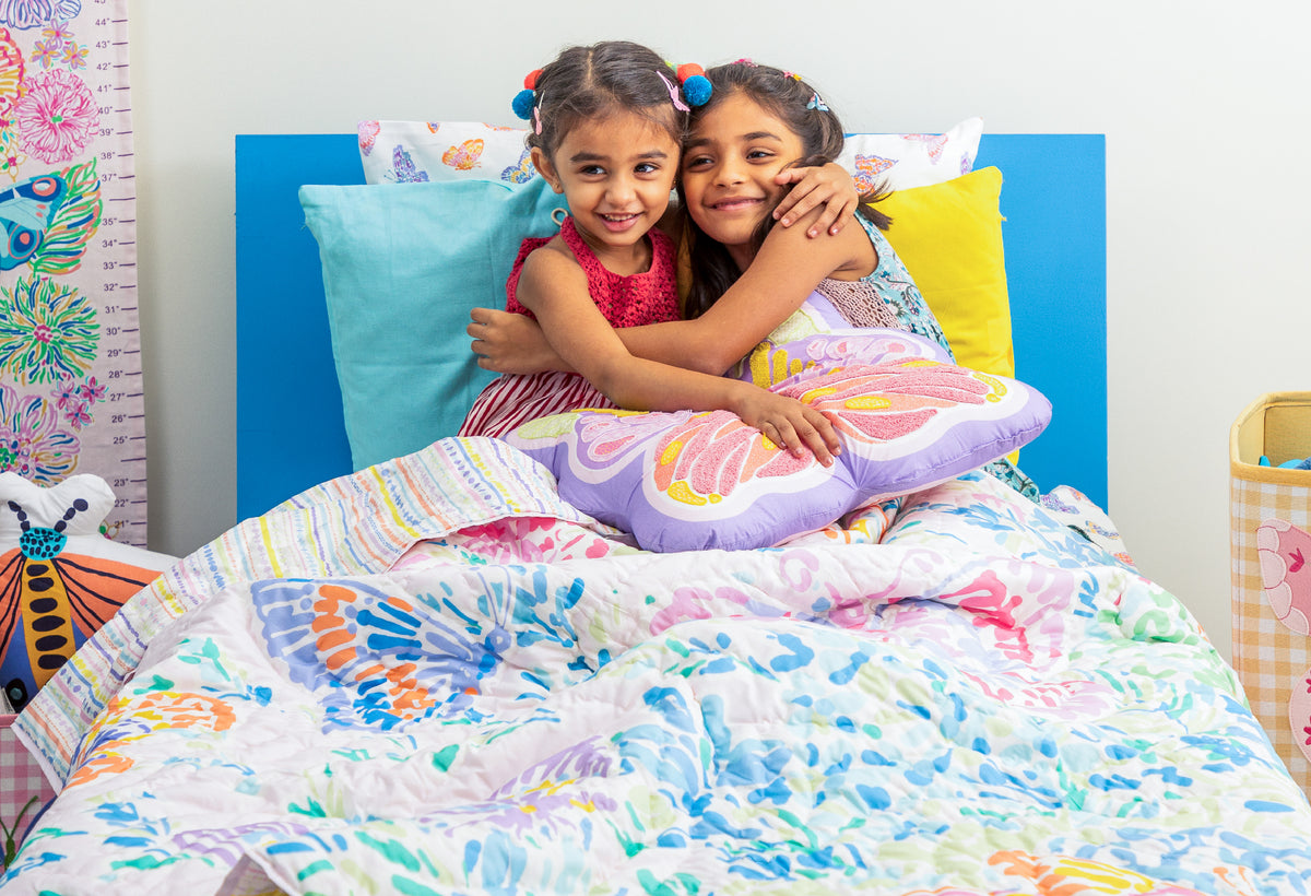 Sweet Dreams is a baby quilt that safekeeps all things pretty. Its pastel landscape and visuals of flight lead into gentle slumber. Holding your little one by the pinky, it is a promise for tomorrow.. Complete the journey with baby steps into A World Before Time
